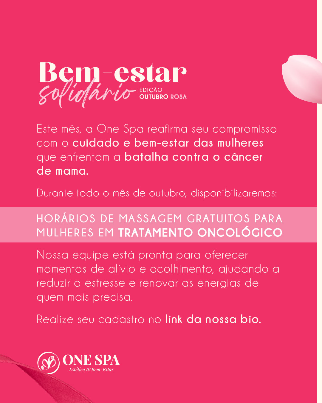 Neste mês, a ONE SPA reafirma seu compromisso com o cuidado e bem-estar das mulheres que enfrentam o câncer de mama.